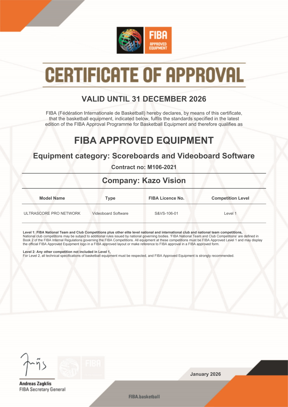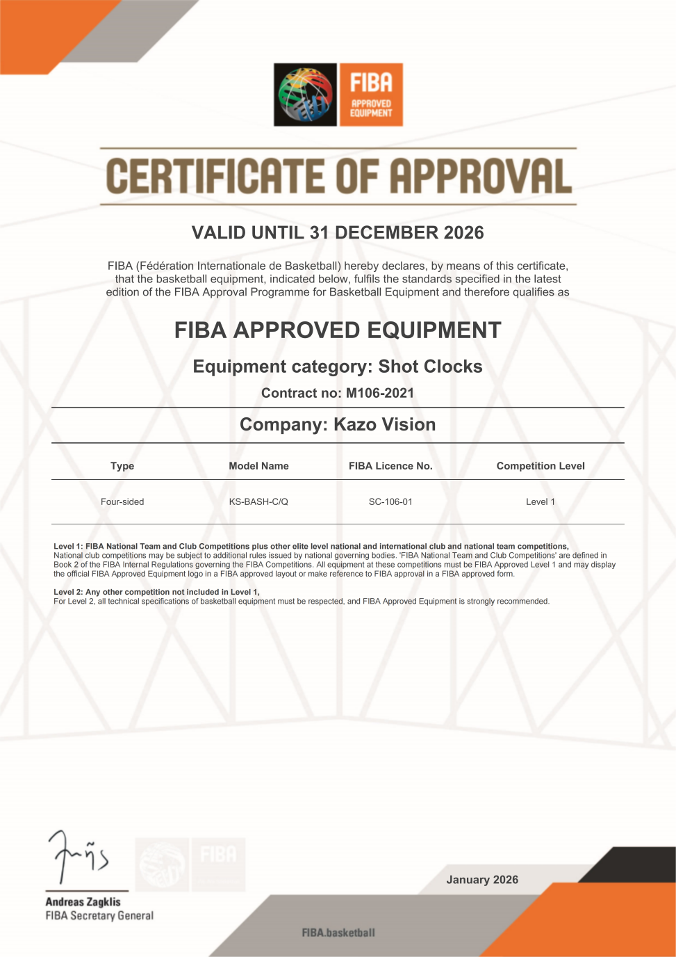 篮球比赛记分系统 - FIAB证书 - 凯哲视讯